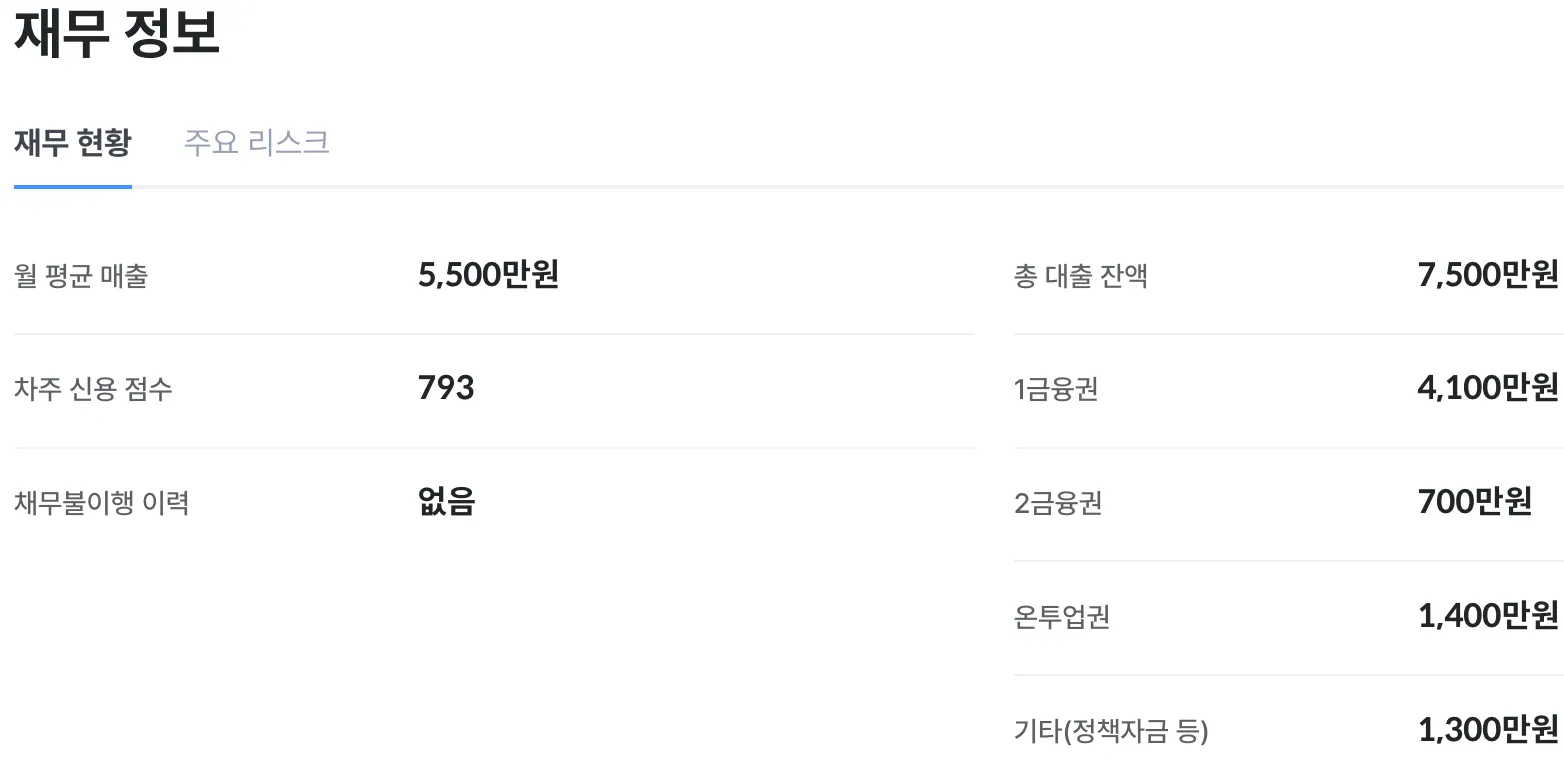 온투업 투자의 핵심은 연체와 부실이 발생할 가능성이 낮은 곳에 투자하는 것이예요. 펀딩 상세 페이지에서 가게의 월 평균 매출에 비해 대출 잔액은 적당한지부터 확인해보세요. 사장님의 업력도 꼭 살펴 보세요. 오랫동안 가게를 운영하셔서 업력이 길수록 안정성이 높아요.