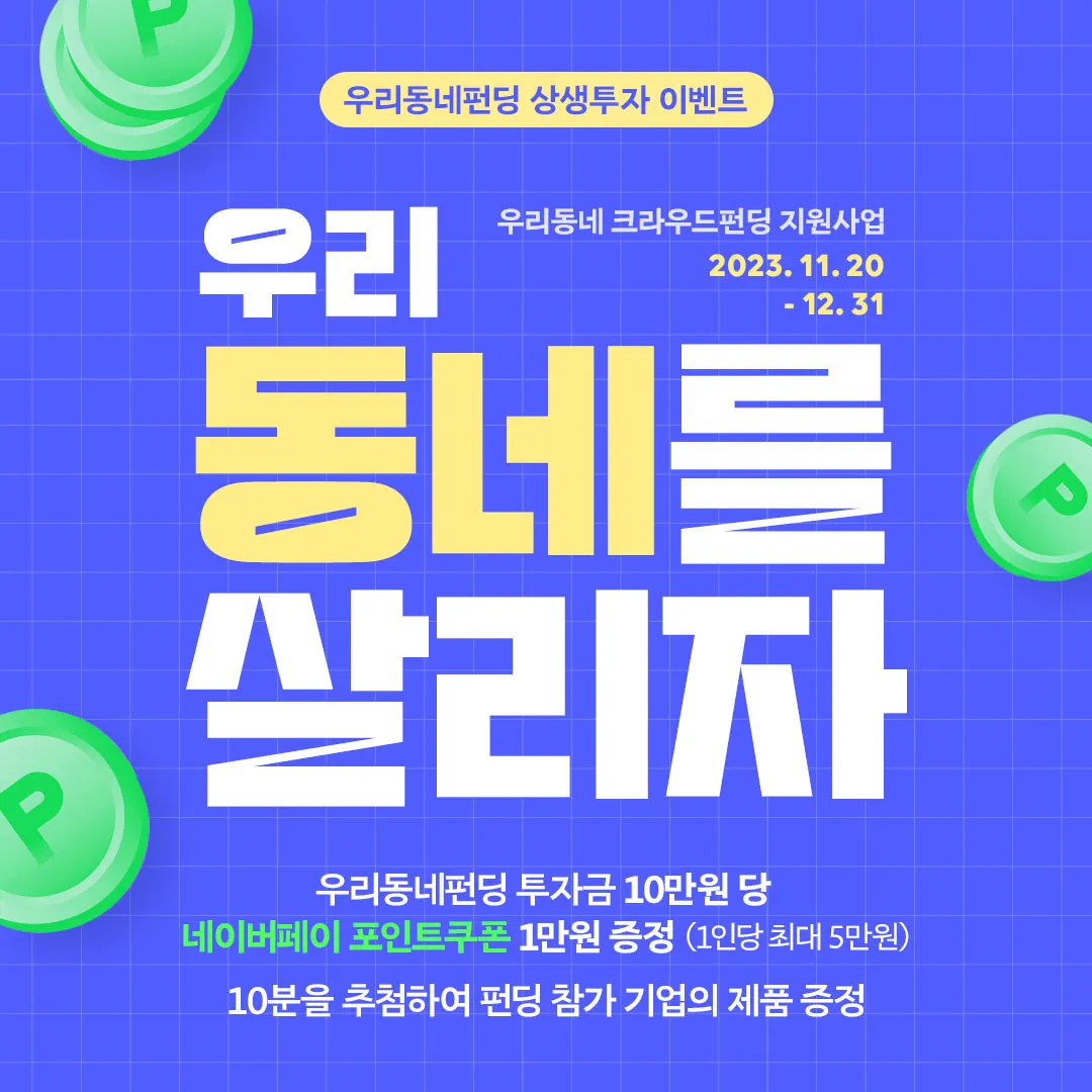 펀딩 투자금액 10만원 당 네이버페이 포인트 쿠폰 10,000원권 지급